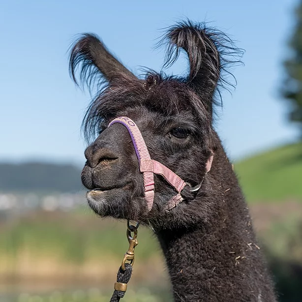 Der Vorwitzigste von allen Lamas. Er würde am liebsten von früh bis spät Belohnungsfutter fressen.